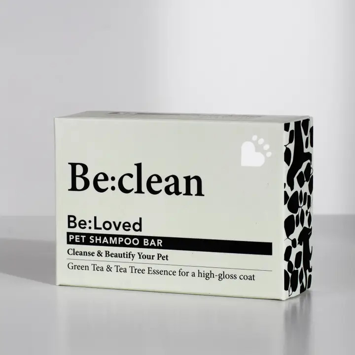 Be:Clean - Antibacterial & cleansing Pet Shampoo Bar - This shampoo bar gives a glossy coat, with a reassuringly clean scent thanks to the natural blend of tea tree essence and the growth-boosting benefits of green tea extract. 110g.